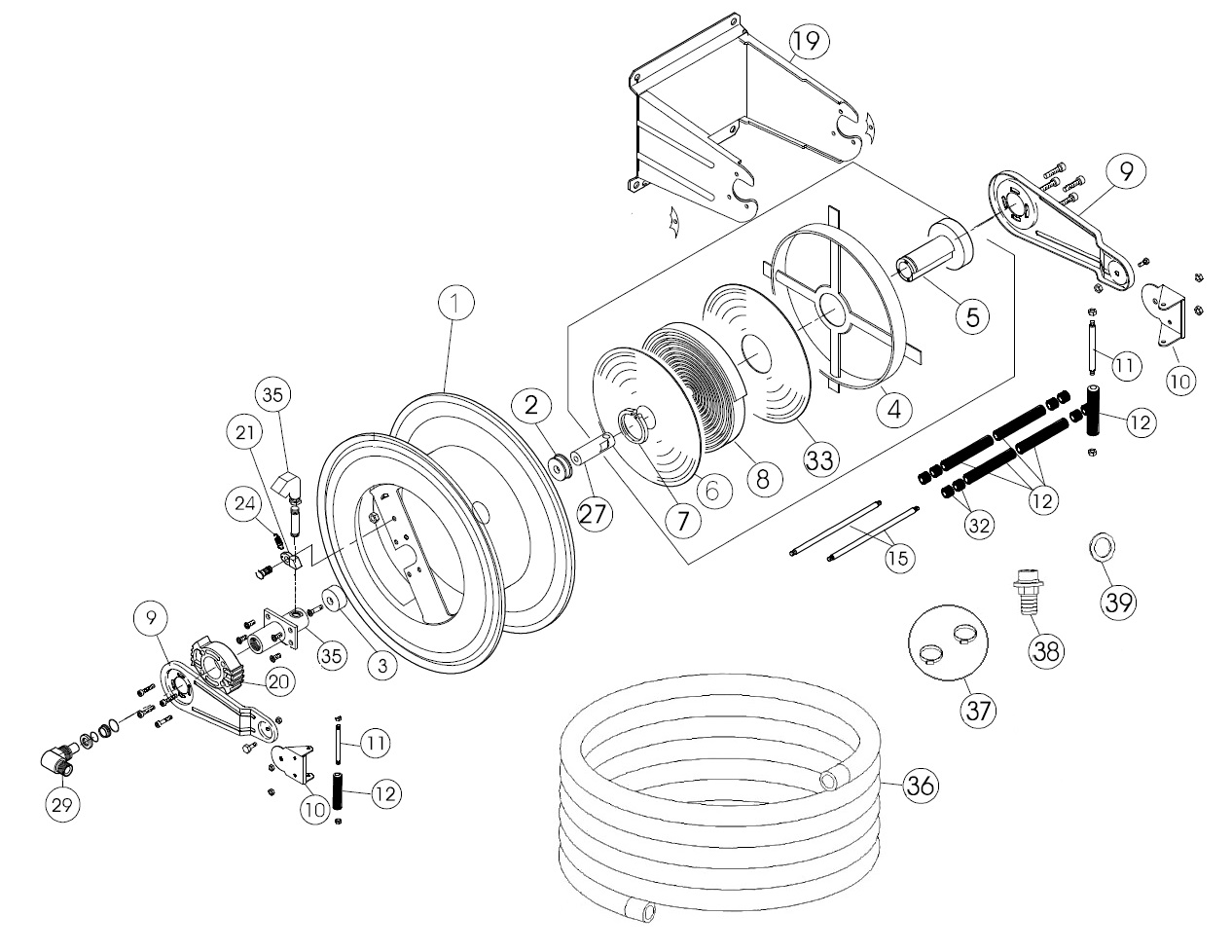 ENROULEUR ACIER POUR ADBLUE EQUIPE FLEXIBLE 10M EN 3/4''