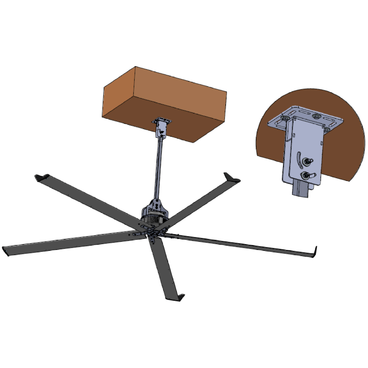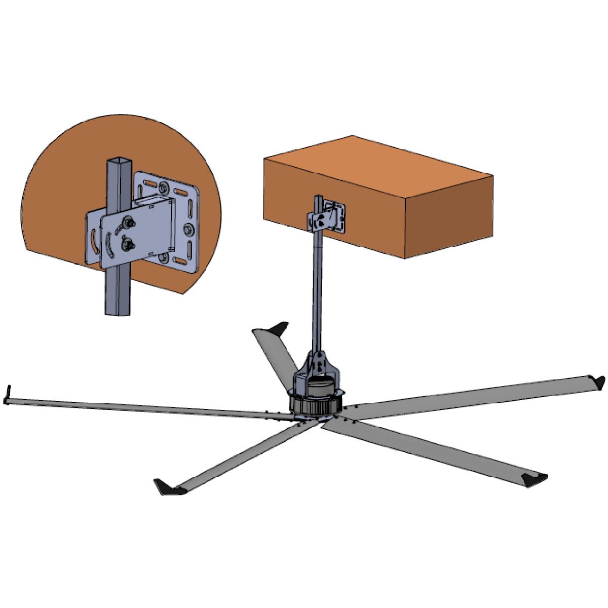 Kit complet permettant de fixer un brasseur d'air sur une charpente bois, comprenant :
