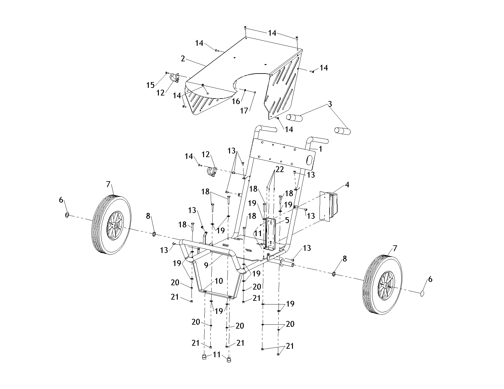Capot : | Acier inoxydable | Roues : | Gonflables Ø400mm |