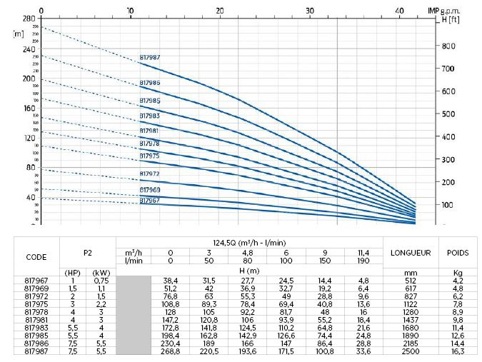 817865 : HYDRAULIQUE 200L/MIN PR MOTEUR 2,2KW EMBOUT INOX 17 ETAGES