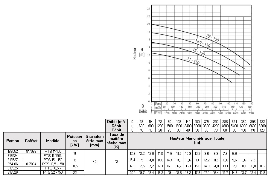 Pour HMT 7,5 mètres = débit de 396 m3/h ; 6 600 l/min