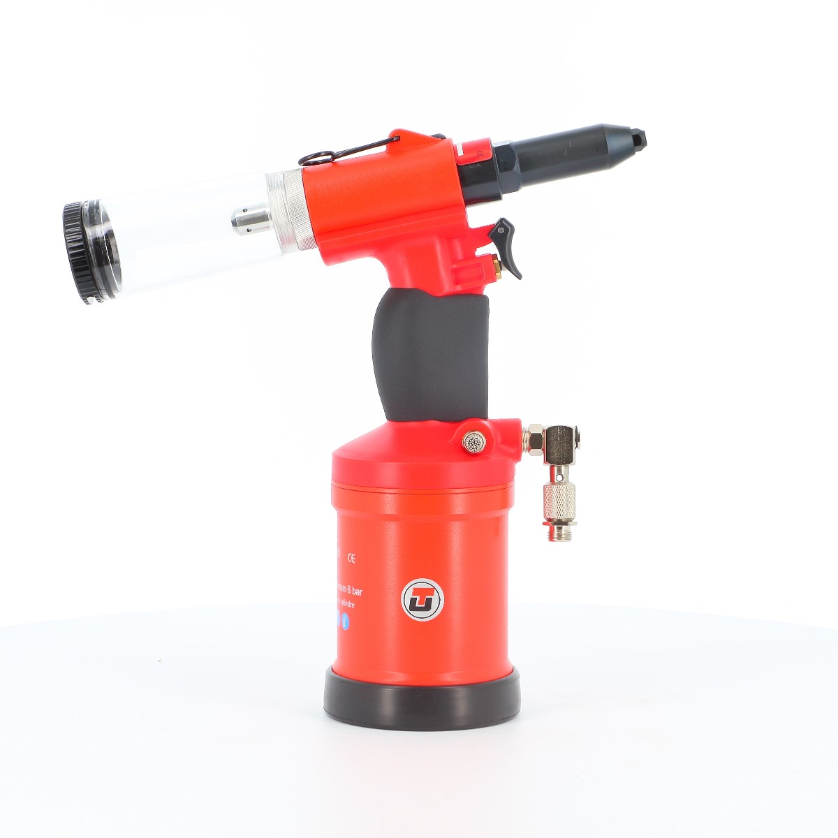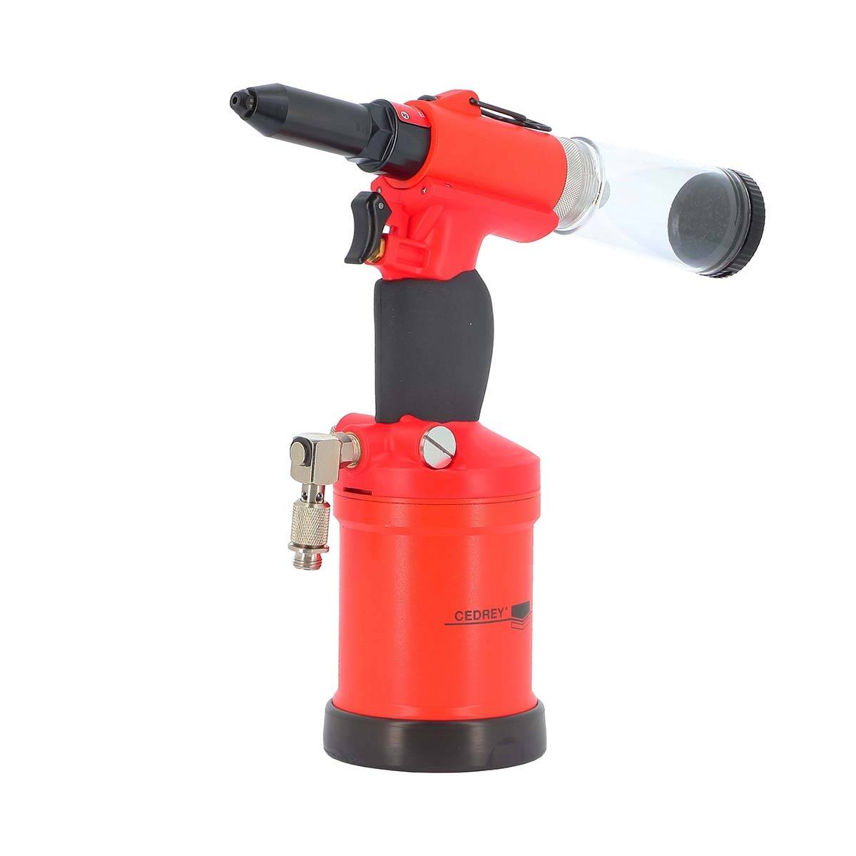 "Étudiée pour fonctionner avec des rivets aveugles ""pop"" en alu, cuivre, acier & inox jusqu'à 4,8 mm. Nombreux points forts : carter composite robuste et léger, silencieux incorporé, poignée gainée, raccord d'admission tournant, système venturi maintenant automatiquement le rivet dans le porte embout & facilitant ainsi grandement le travail vers le bas, soupape de sécurité et aspiration automatique des clous dans le bocal de récupération. Livrée en coffret avec manuel et clés de service."Informations complémentaires :